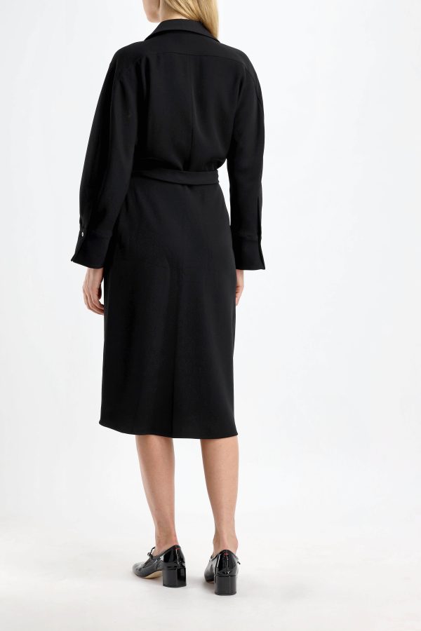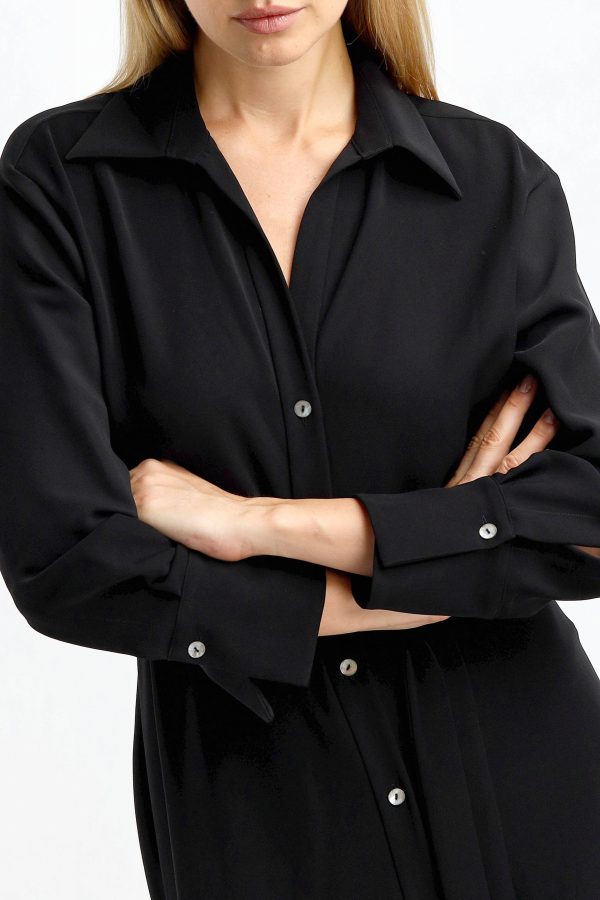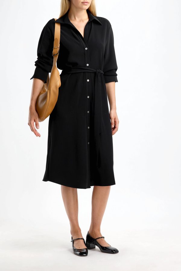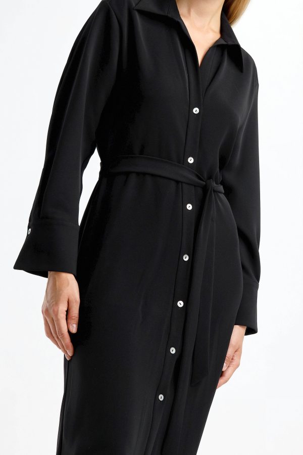 Blouse dress in black Midi length Classic collar Button placket Button cuffs Detachable waist belt Belt loops Straight hem Care: Gentle wash Material: 100% polyester