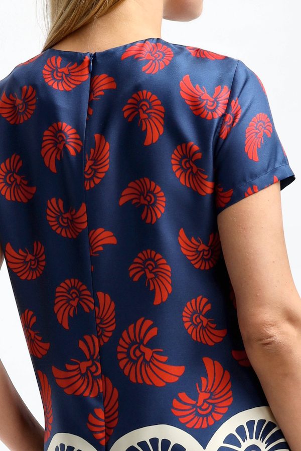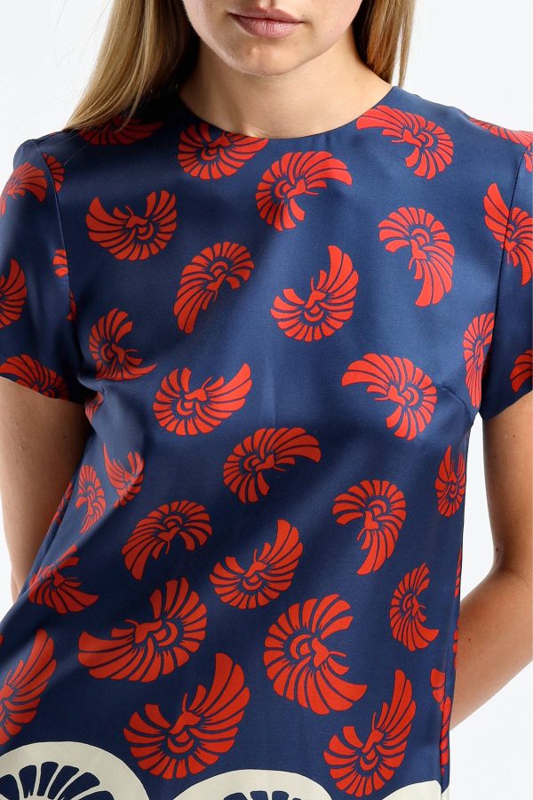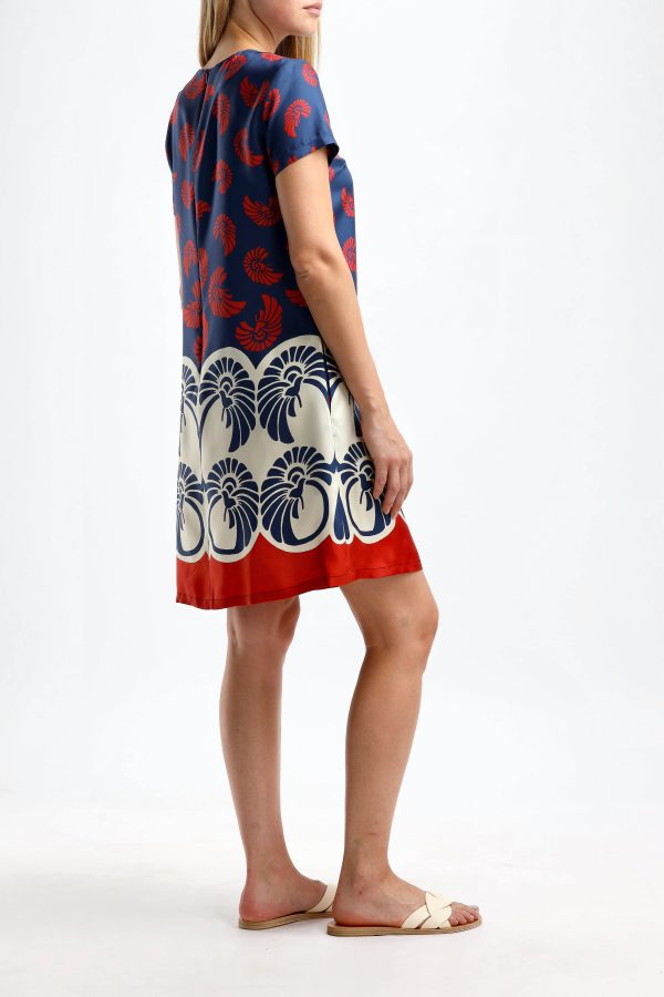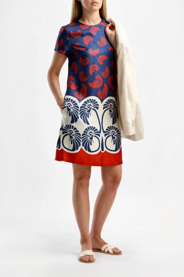 Dress Swing in Palmetto Mini length Round neck Short sleeves A-line Concealed side pockets Zipper on the back Made in Italy Care: Dry cleaning Material: 100% silk The model is 1,78 m tall and wears size S.